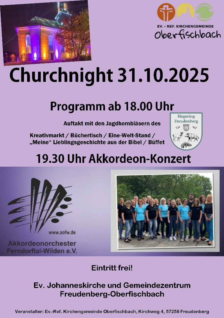 31.10.2025, 19:30 Uhr: Konzert bei der Churchnight der ev.-ref. Kirchengemeinde Oberfischbach
