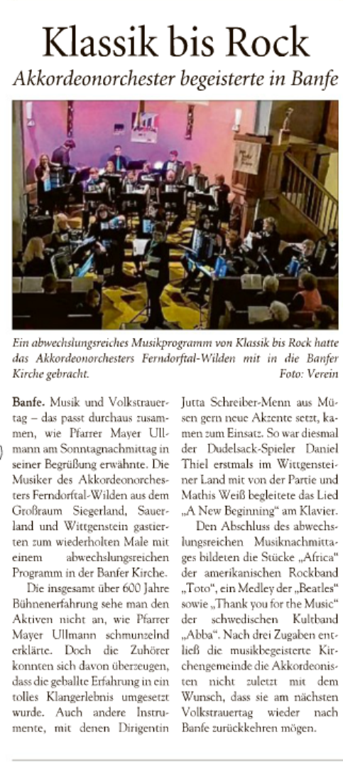 Bericht Kirchenkonzert Banfe 19.11.017 Siegener Zeitung - Akkordeonorchestergemeinschaft Ferndorftal-Wilden