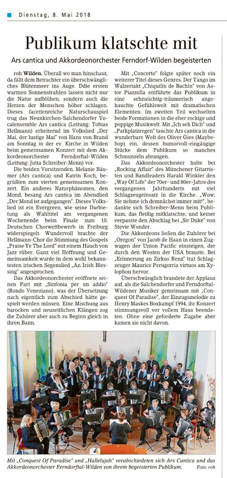 Bericht Kirchenkonzert Wilden 06.05.2018 Siegener Zeitung - Akkordeonorchestergemeinschaft Ferndorftal-Wilden