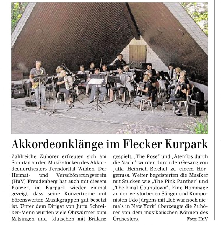 Bericht Kurkonzert Freudenberg 14.06.2015 - Akkordeonorchestergemeinschaft Ferndorftal-Wilden