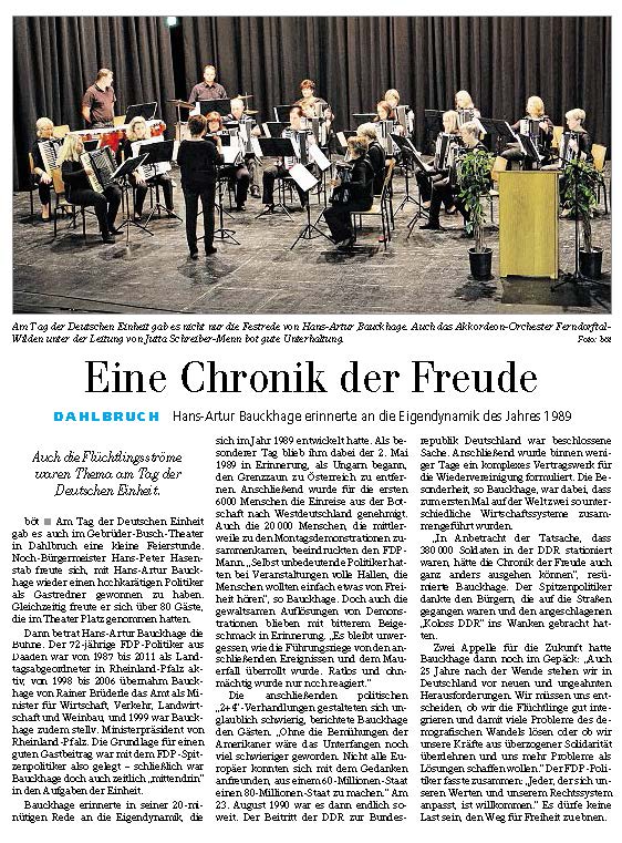 Bericht vom Festakt 03.10.2015 Siegerner Zeitung - Akkordeonorchestergemeinschaft Ferndorftal-Wilden