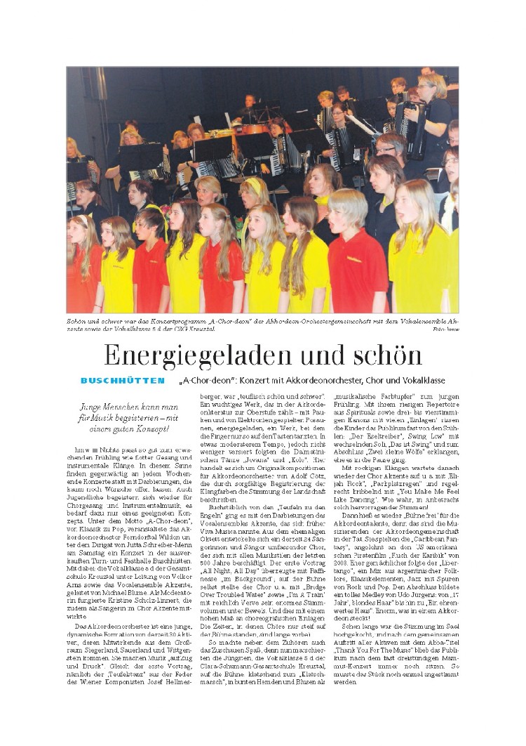 Konzert in der Festhalle Buschhütten am 09.04.2011
